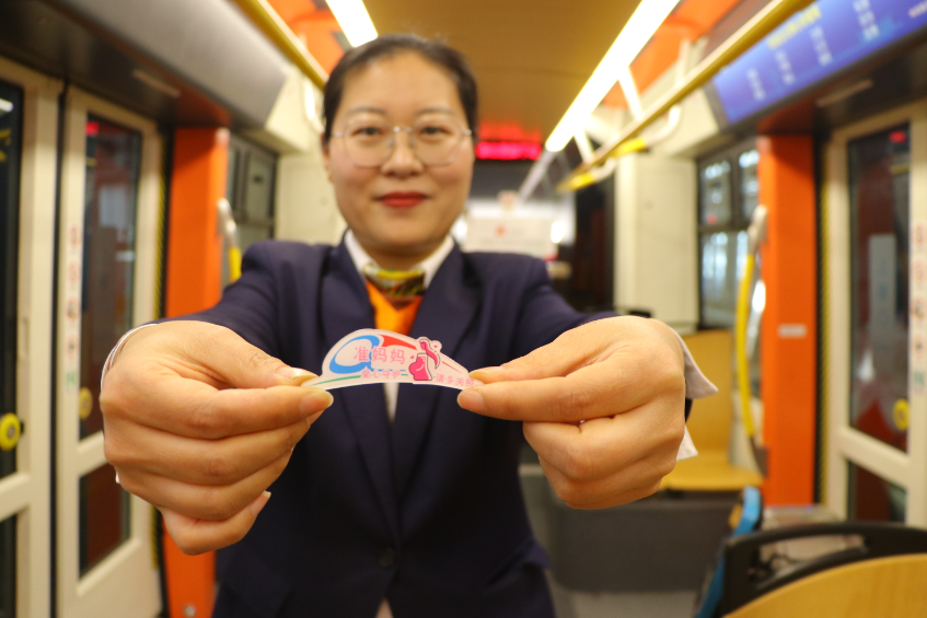 在“三八”國際婦女節(jié)來臨之際,青島有軌電車“巾幗志愿服務(wù)團隊”將目光聚焦到車廂里,根據(jù)不同乘客人群的乘車需求,高度匹配精準化服務(wù),為女性乘客打造了一列“女性友好”主題車廂。3月8日當天,記者看到,有軌電車車廂里為哺乳期媽媽安裝了移動式母嬰簾,為寶媽提供了安心的車廂一隅。為帶孩子乘車的乘客準備了“愛心媽媽包”,里面裝有紙尿褲,濕巾,紙巾,衛(wèi)生用品等。為乘車哭鬧的兒童準備了“乖乖兒童魔法袋”,里面裝有孩子們喜歡的小粘貼,小汽車等玩具。為孕期準媽媽制作了“準媽媽”胸牌,方便熱心乘客辨認身份為其讓座,車廂乘務(wù)員在服務(wù)過程中也會給予特別關(guān)注和照顧。